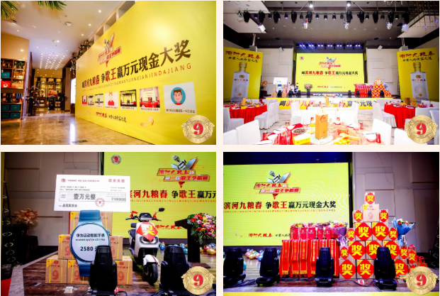 12月28日,由甘肃滨河九粮液品牌营销有限公司举办的"滨河九粮春"杯第二届歌王争霸赛总决赛在兰州金果海港礼宴中心举办。第二届歌王争霸赛自10月12日开始,总共进行了6场分站赛,共计200多人报名参赛,根据选手们的唱功、台风、节目创意最终选出各分站赛的冠军6名,进入总决赛歌王的角逐。