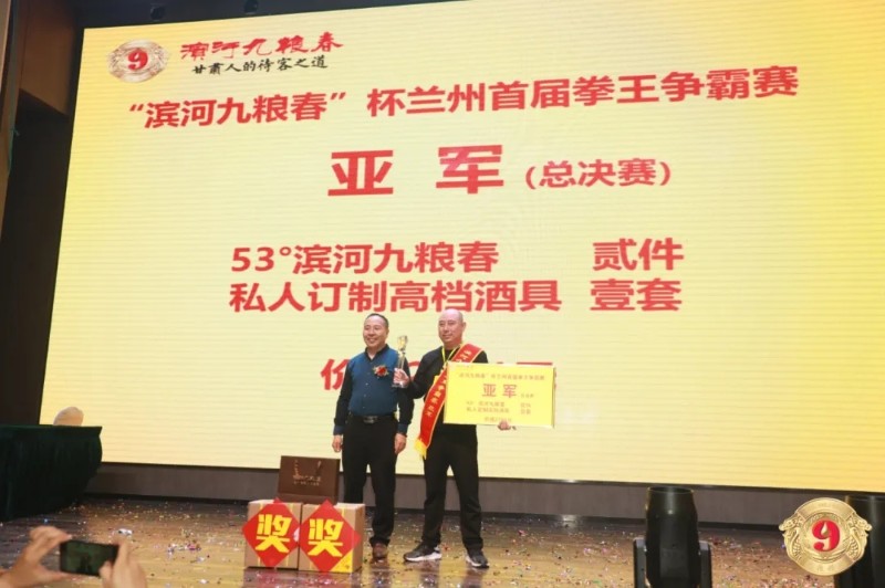 9月25日,在这孕育着希望和收获的美好日子里,甘肃省酒类商品管理局局长陈浦先生、甘肃省酒类商品管理局副局长沈明程先生、甘肃省酒业协会副会长党金林先生、甘肃滨河集团副总经理华光先生、其他各位领导及经销商代表等共同相聚在“滨河九粮春”杯兰州首届猜拳行令酒文化拳王争霸赛总决赛现场,共同庆祝和见证“滨河九粮春”杯酒文化拳王的诞生。